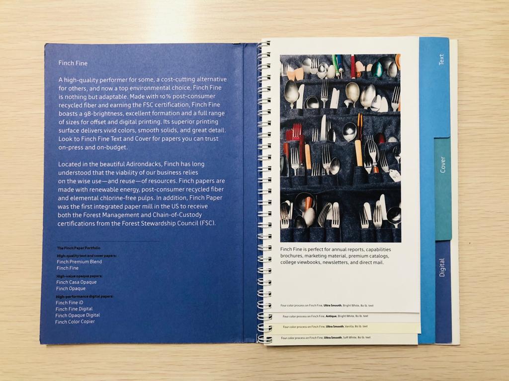 Choosing Finch is like buying produce at the farmer’s market. There’s no mystery where it came from, how it was made, who did the work or how the environment was affected. Finch papers are made with 100% certified fiber, 66% renewable energy, post-consumer recycled fiber and elemental chlorine-free pulps.