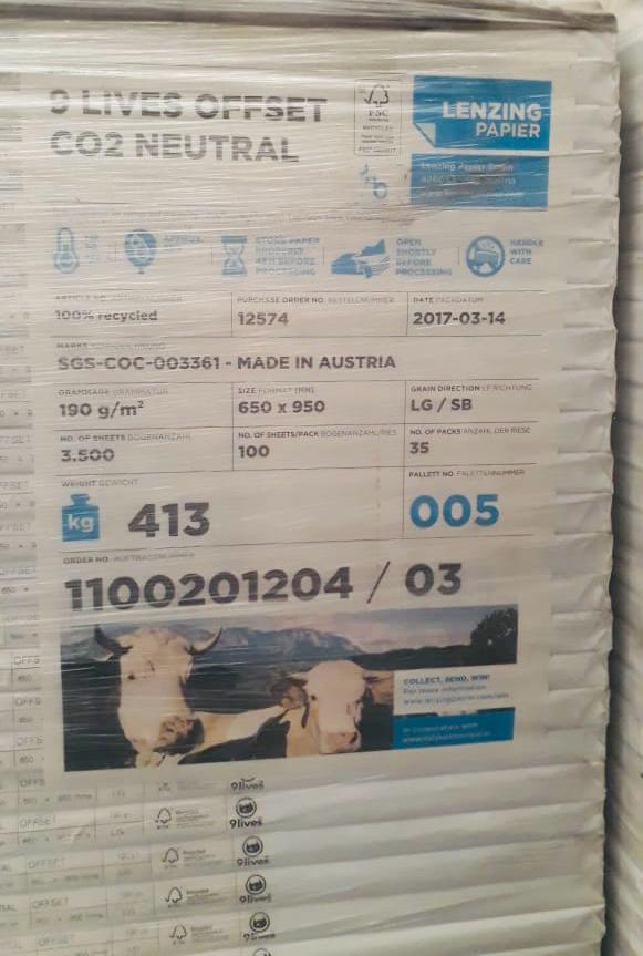 9lives “Born Again Paper” is a high quality 55% recycled paper with excellent environmental attributes. Its recycled properties may not be apparent to your naked eye, but therein lies its beauty. Its crisp, white surface produces pin-sharp pictures and ensures your solid colours stay bright.